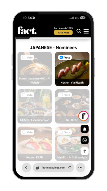 Hocho has been nominated for the FACT Dining Awards Riyadh 2025, celebrating our dedication to authentic flavors, refined craftsmanship, and memorable dining experiences.